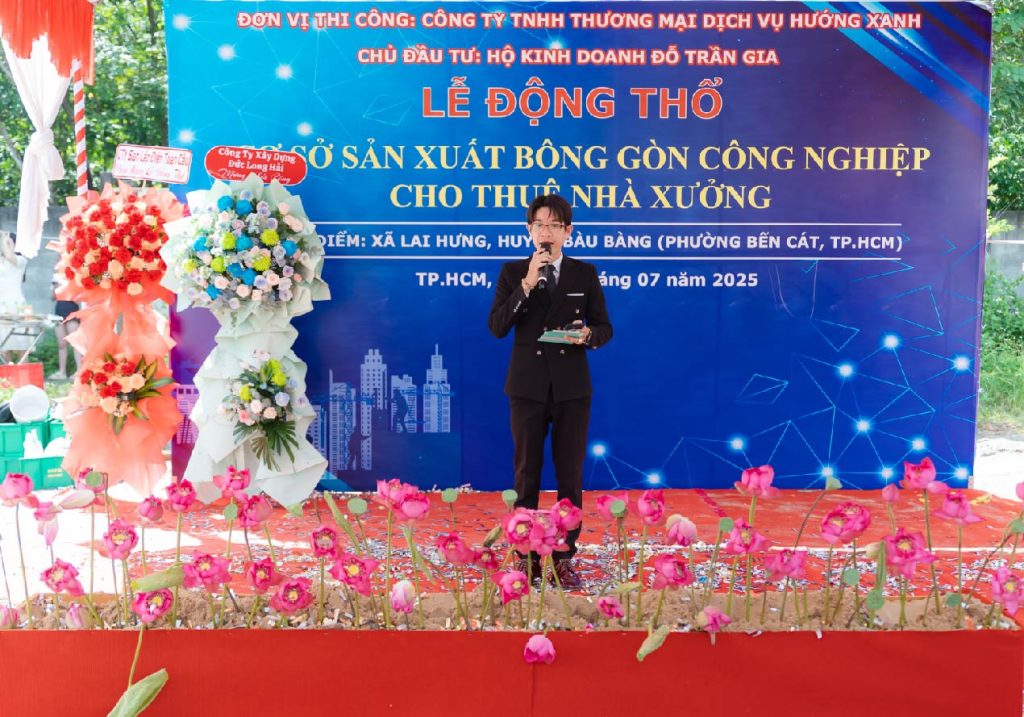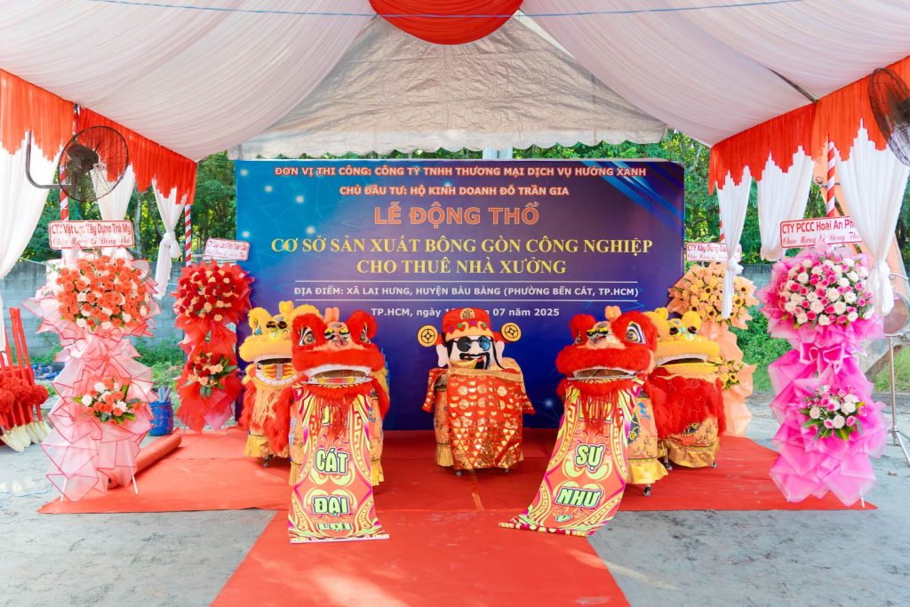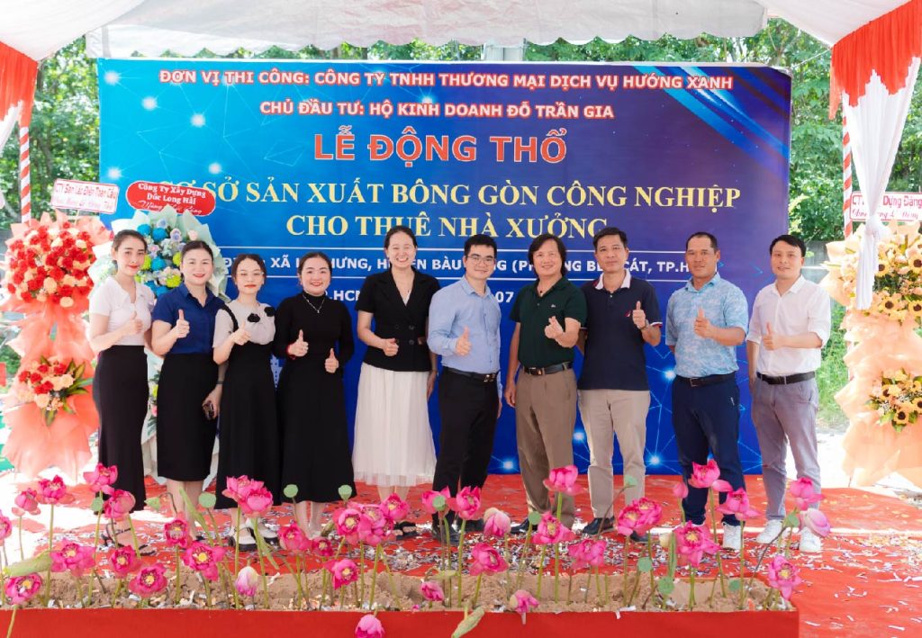 Ngày 12/07/2025, Công ty Hướng Xanh đã long trọng tổ chức lễ động thổ khởi công công trình nhà xưởng Trần Gia, đánh dấu bước khởi đầu quan trọng cho dự án hợp tác giữa Hướng Xanh và Công ty Trần Gia – một trong những đơn vị có uy tín trong lĩnh vực cho thuê nhà xưởng.