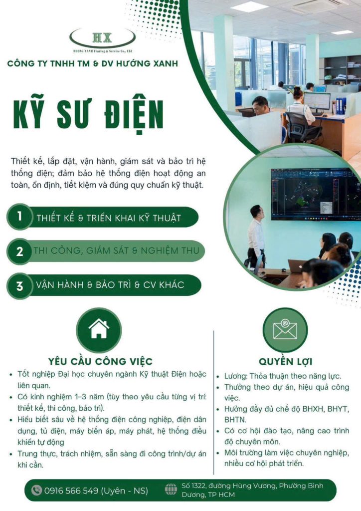 TUYỂN DỤNG VỊ TRÍ KỸ SƯ ĐIỆN