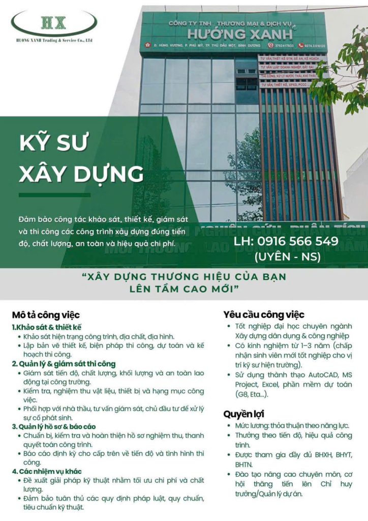 TUYỂN DỤNG VỊ TRÍ KỸ SƯ XÂY DỰNG
