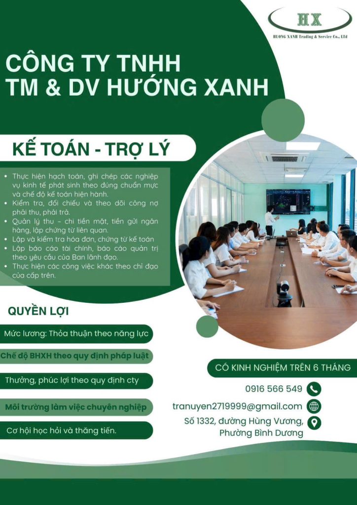 Vị trí Kế toán, ưu tiên có 1 năm kinh nghiệm trở lên.